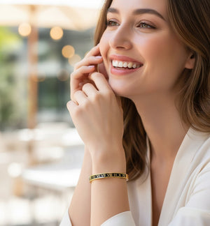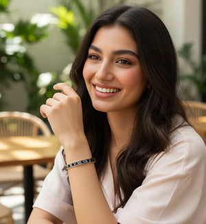 This stylish Roman Numeral Bracelet combines a sleek metal finish with a bold black inlay, creating a luxurious and modern accessory. Available in both silver and gold, it offers a perfect combination of elegance and durability, ideal for daily wear or special occasions.